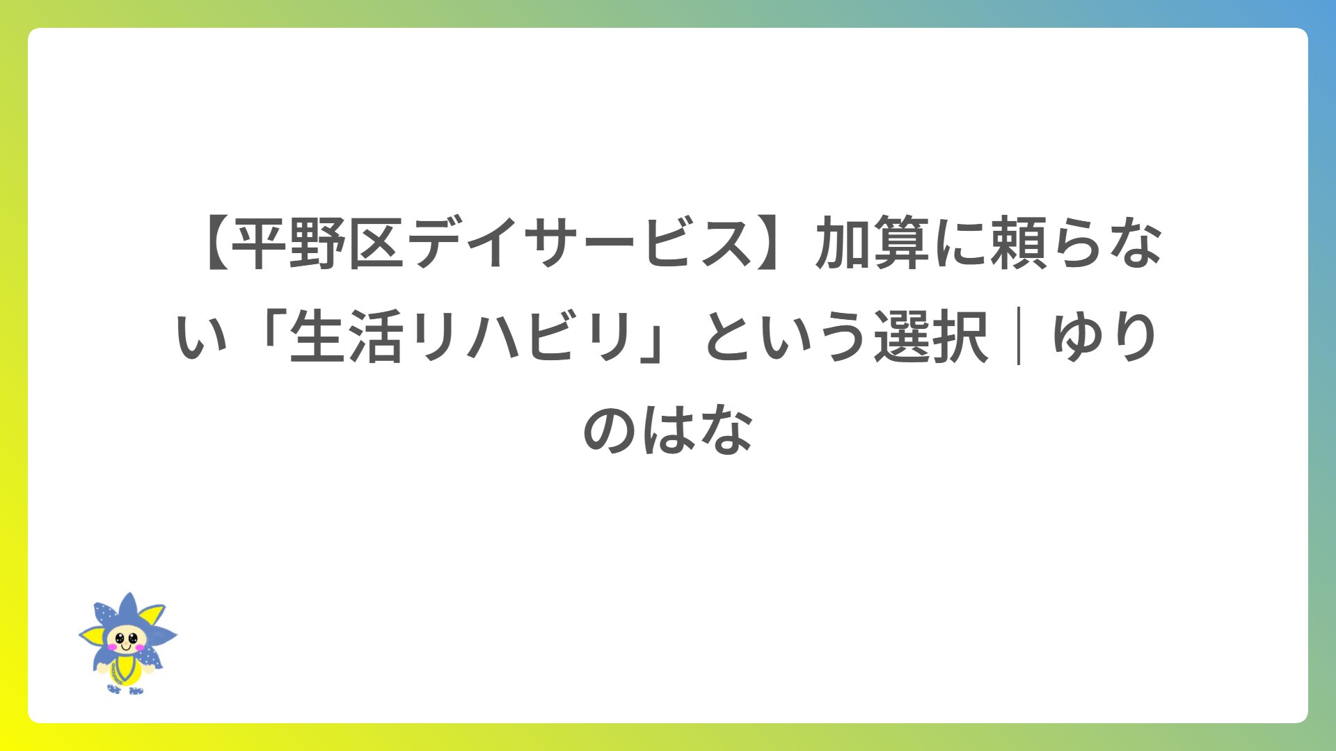 「平野区 デイサービス 地域密着型通所介護 ゆりのはな」で検索!