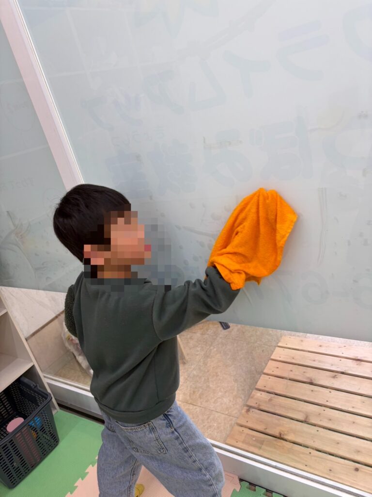 「ここも拭く!」「ピカピカになった!」と、楽しみながら取り組む姿が見られました。