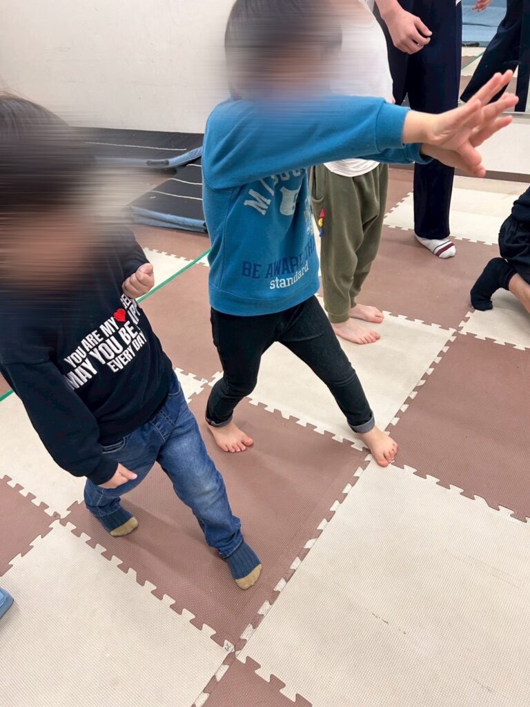 鬼が「だるまさんが〜」と言っている時に動く、振り向いたら止まる、という単純な遊びですが、静と動のメリハリを学ぶのにとても良い繰り返しの動きになっています✨️