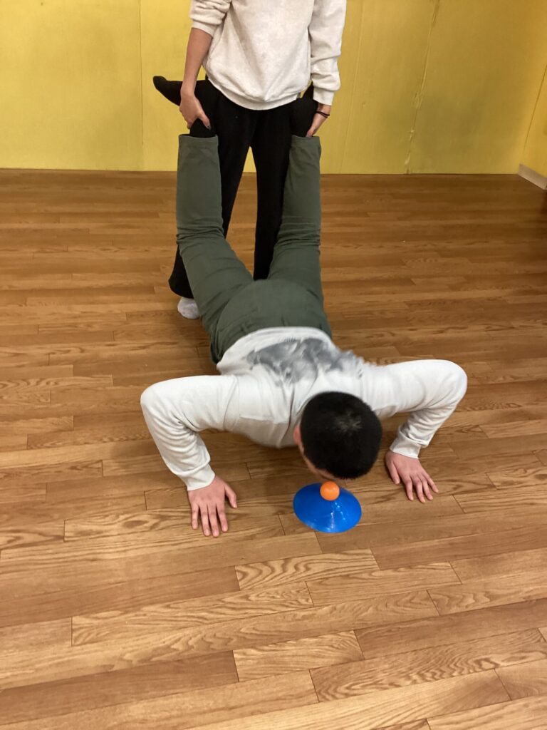 普段の腕立てとはひと味違う動きに、子どもたちは大興奮!