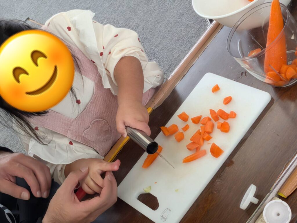 みんな何回もカレー作りに取り組んで頂いている為、恒例の手洗いからみんなで野菜の皮を剥いたり切ったりの工程を上手にこなして、初めてのお子様にスタッフと一緒に教えて、美味しくなるよう心を込めて参加して頂きました😋