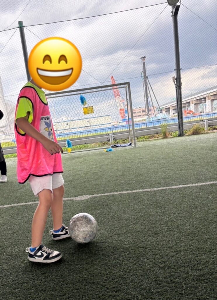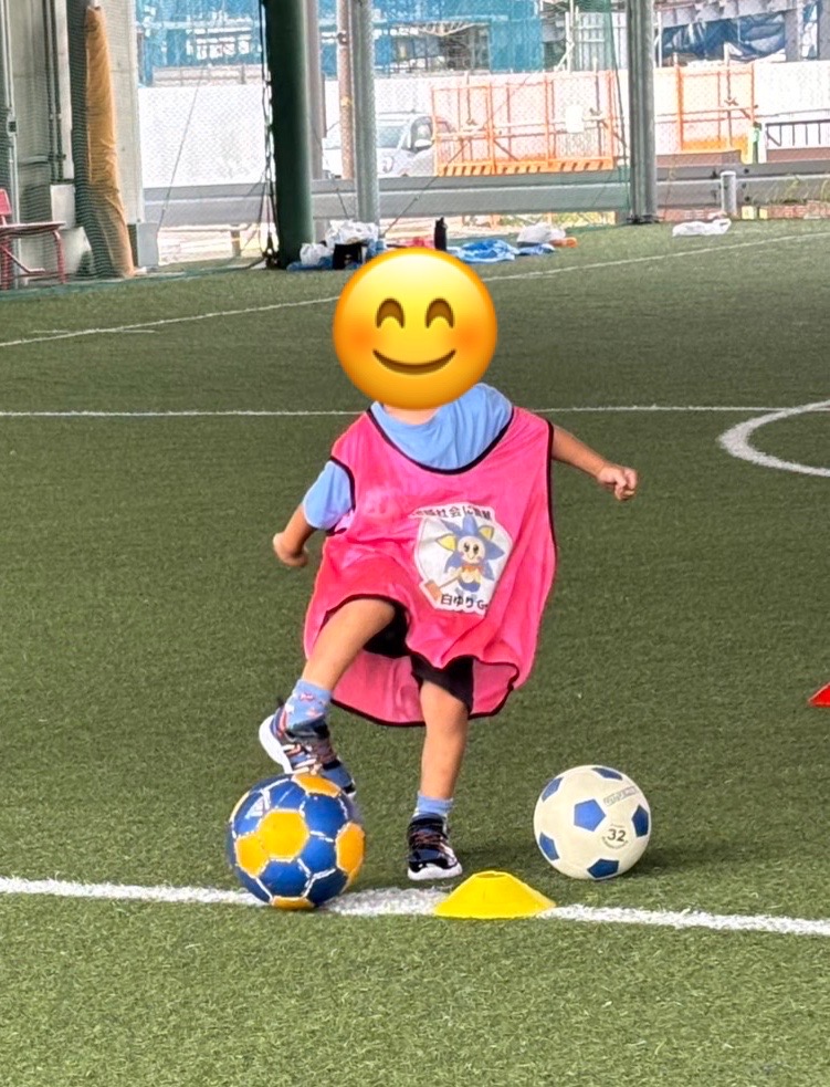 ウォーミングアップにボール運びリレーやドリブル障害物競走に挑戦!自分のペースで頑張って頂き、他の子の頑張る様子にも積極的に応援して頂いております☺️