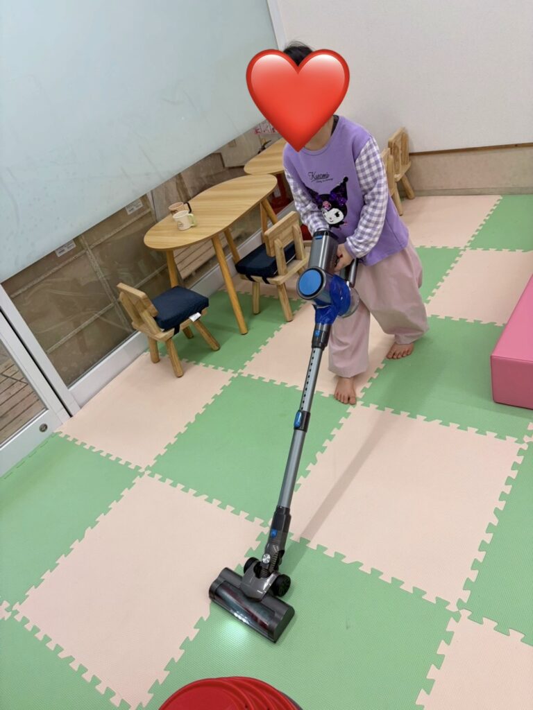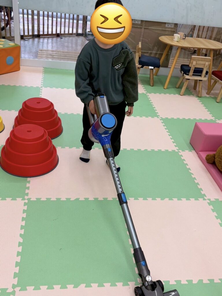 「掃除機やりたい!!」「次ぼく!」「わたしもやってみたい!」と、掃除機は大人気😂
