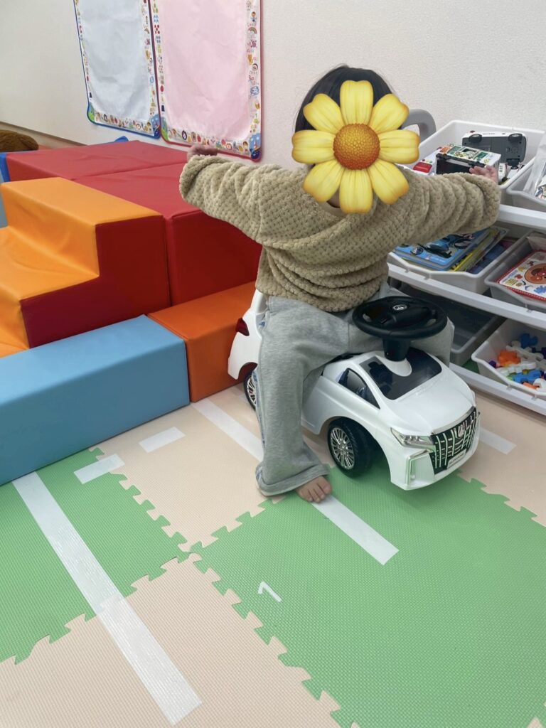「ここに停めようかな?」と考えながら遊ぶことで、想像力や指先の操作力も育まれています🌱
