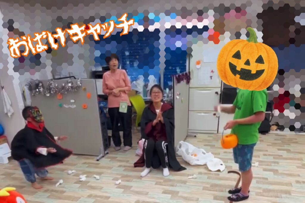 今回は、感覚遊びや運動あそびを組み合わせたハロウィンならではのレクリエーションを実施しました。