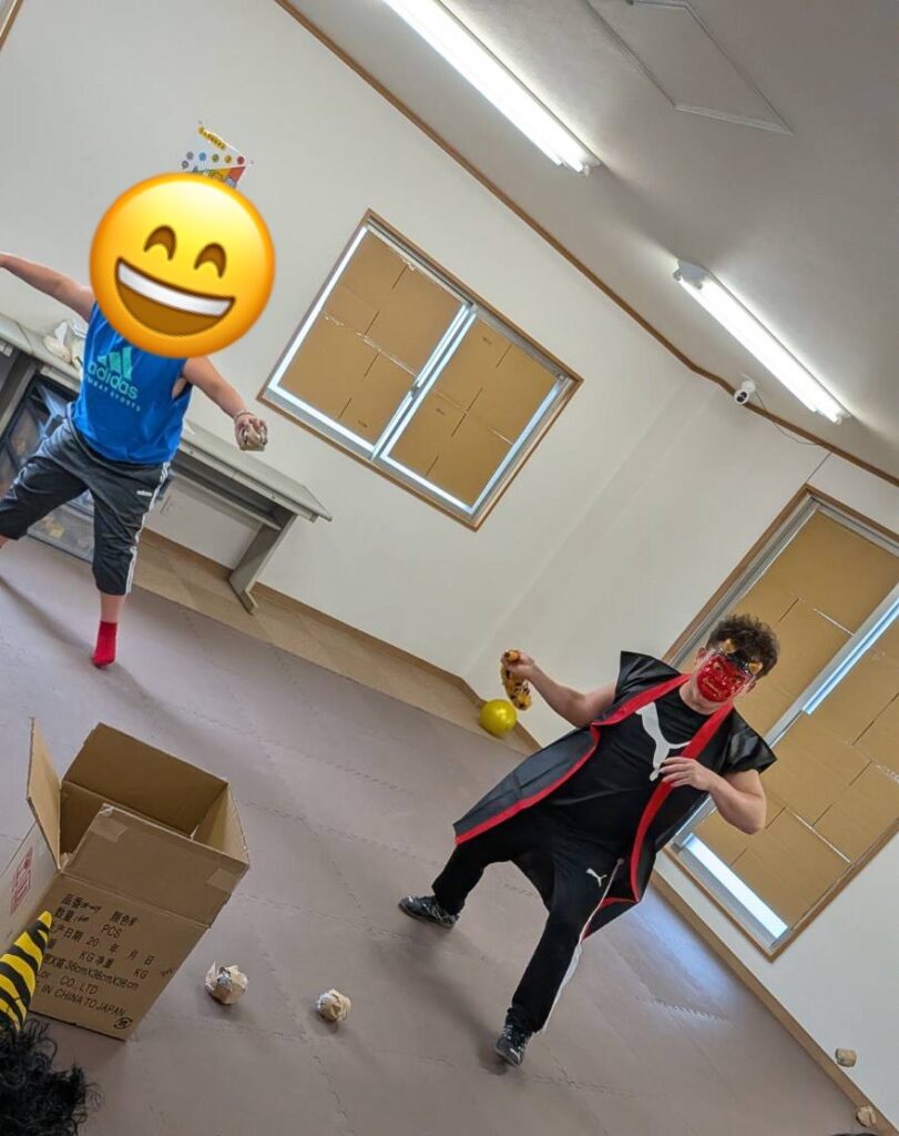 鬼に向かって一生懸命ボールを投げる姿が見られました。