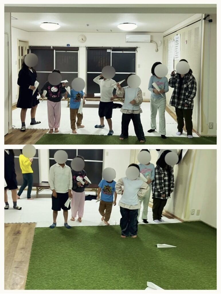 2025.11.30 ぐりーてぃんぐ 紙ひこうきコンテスト【ぐりーてぃんぐ】 白ゆりグループ Screenshot こんにちは!ぐりーてぃんぐです 紙飛行機コンテストをしました! 「せーの!」で飛ばしました♪ どうしたらもっと遠くまで飛ぶか、角度や形を工夫したり、教え合ったり、楽しく活動できました☺️