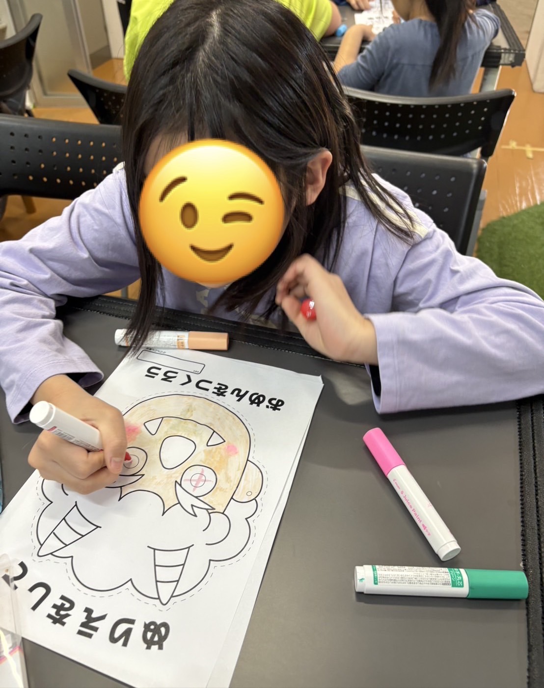 完成後は、お面をつけて記念撮影📸