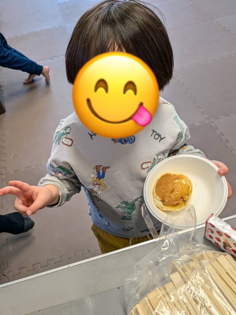 できあがったたこ焼きとホットケーキを囲んで、みんなでいただきます。