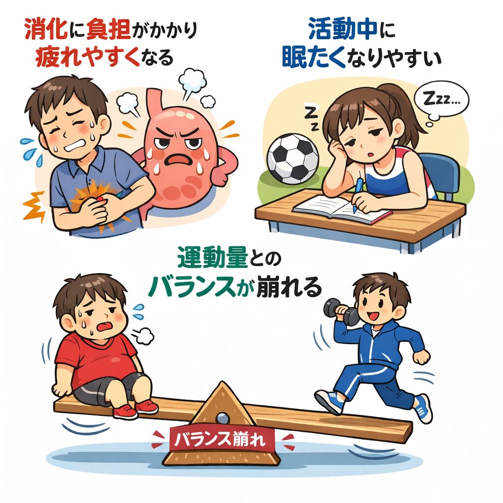 - 消化に負担がかかり、疲れやすくなる