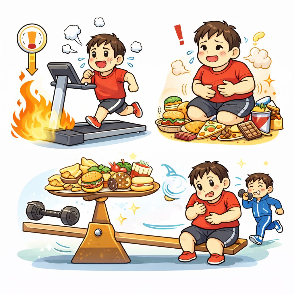 運動だけで食事のバランスを補うことは難しいとされています。
