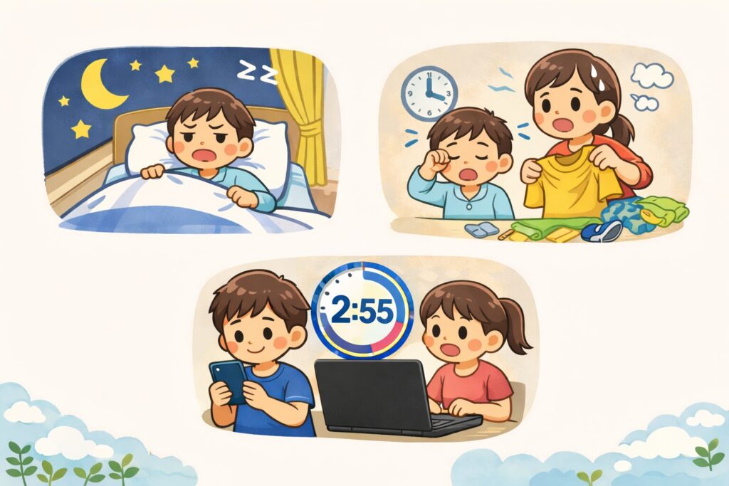 お子さまの生活習慣について、このようなお悩みを抱えている保護者様はとても多くいらっしゃいます。