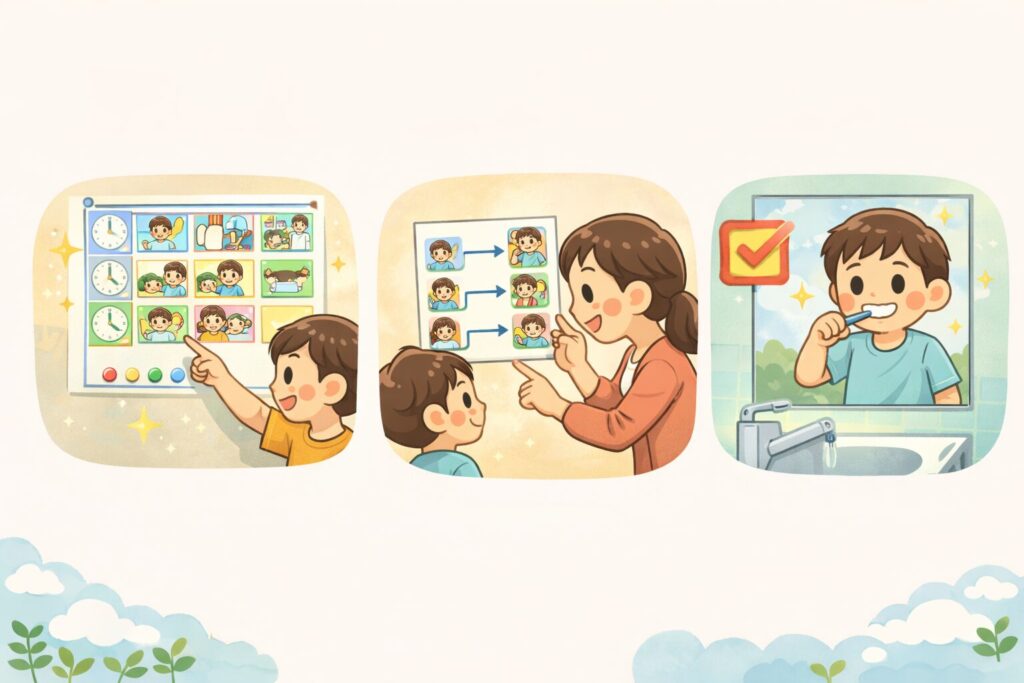 子どもたちは「次に何をするか」が分かることで安心して行動できます。