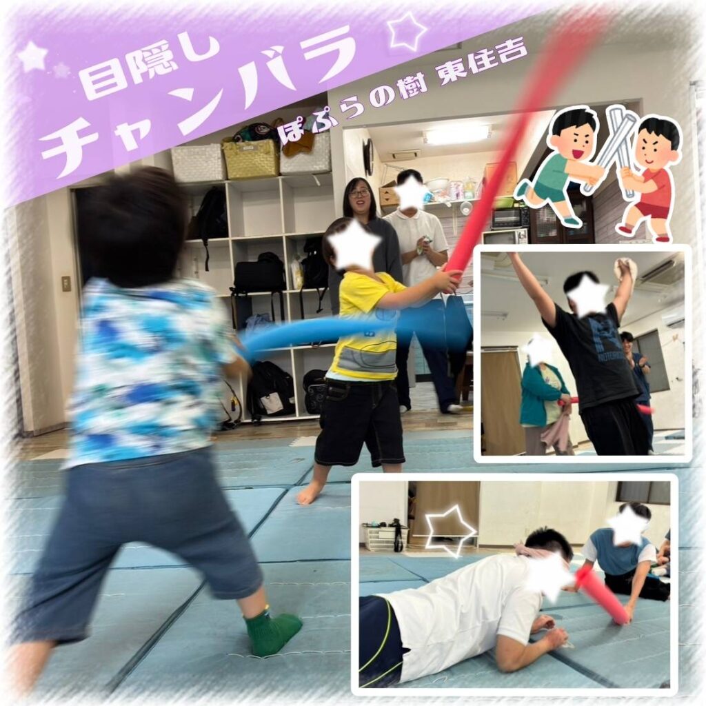 🥷 目隠しチャンバラで集中力アップ!〜ぽぷらの樹東住吉の療育活動〜