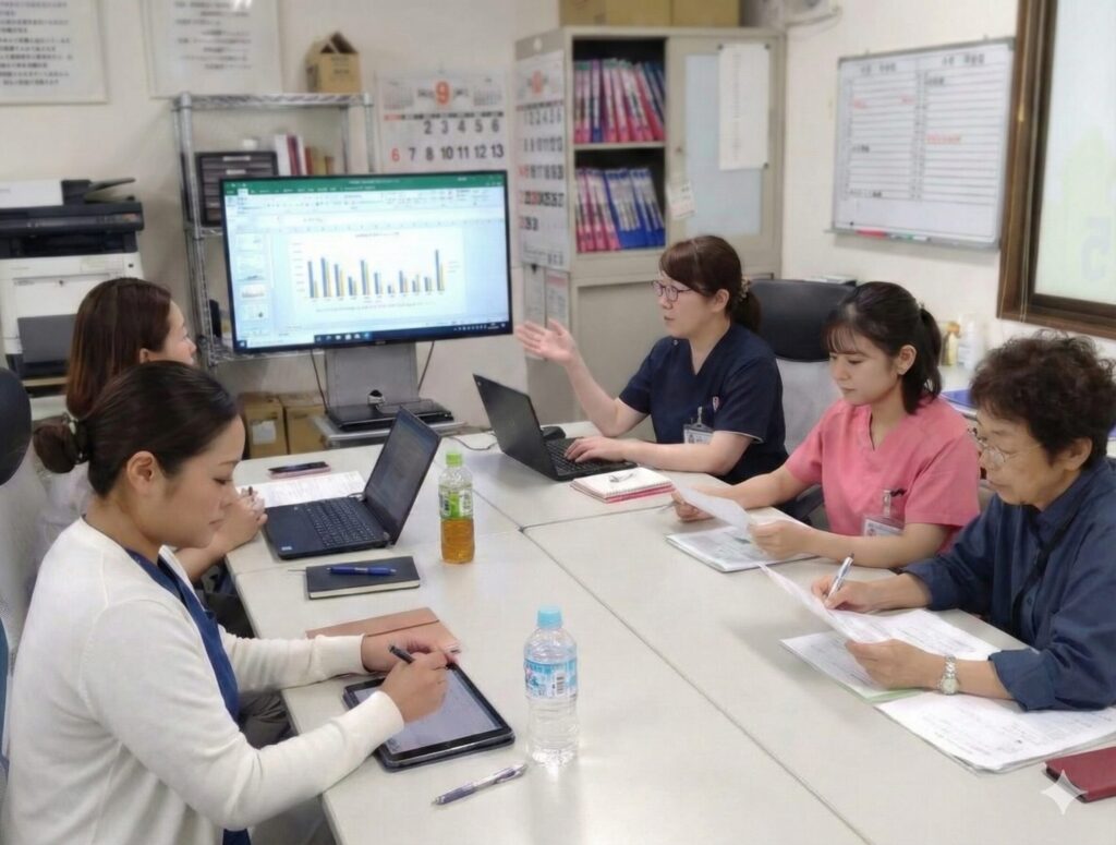 | 17:00 | 帰社・記録作成・報告ステーションに戻り、カルテ入力や管理者への報告を行います。「この利用者様、今日こんな様子でした」とチームで情報を共有します。 |